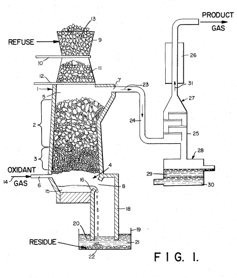 Combustion is a form of oxidation, and most gasifiers use air as the oxidizer. Air is cheap enough, in the sense that it's available for free, but from a thermal-efficiency perspective it's expensive in that only one fifth of air is oxygen with nitrogen forming the remaining four fifths. As a result, gasifiers that use air as the oxidizing gas have to heat up five times as much air as would be needed if they were using pure oxygen as the oxidizer.